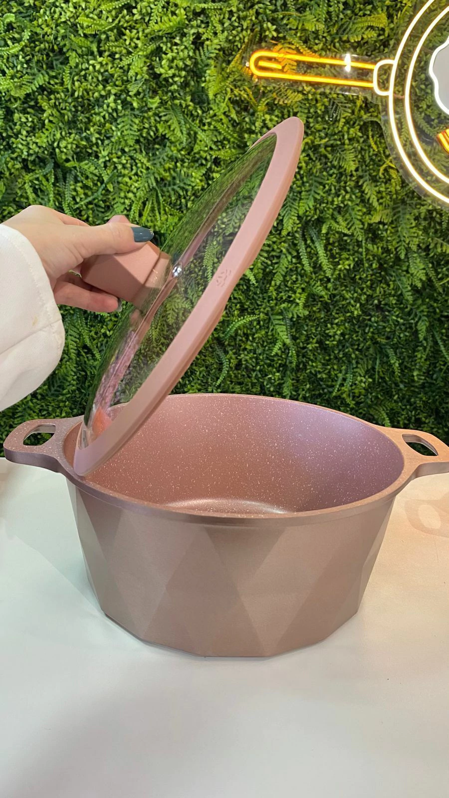 É sinônimo de eficiência , Luxo e elegância. Com fundo triplo desenvolvido para máxima condução térmica, oferece aquecimento uniforme e economia de tempo de até 30% no preparo de alimentos., ideal para chefs profissionais e entusiastas, ela combina tecnologia avançada e design sofisticado em tons de champanhe e rose.