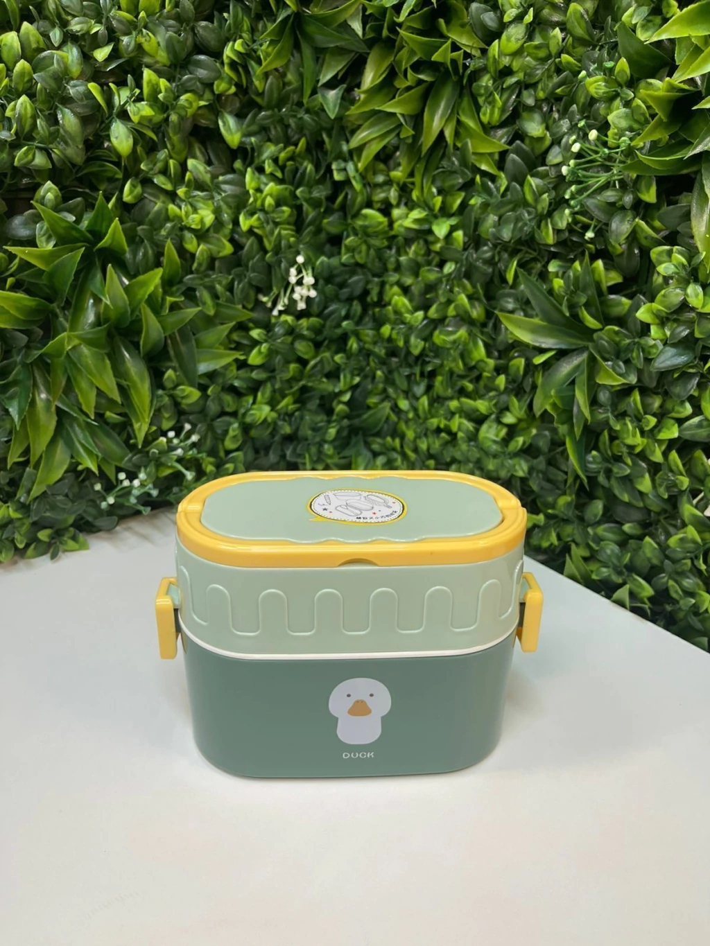 A tampa é com 2 travas laterais e tem uma alça na tampa para facilitar o carregamento da lancheira.