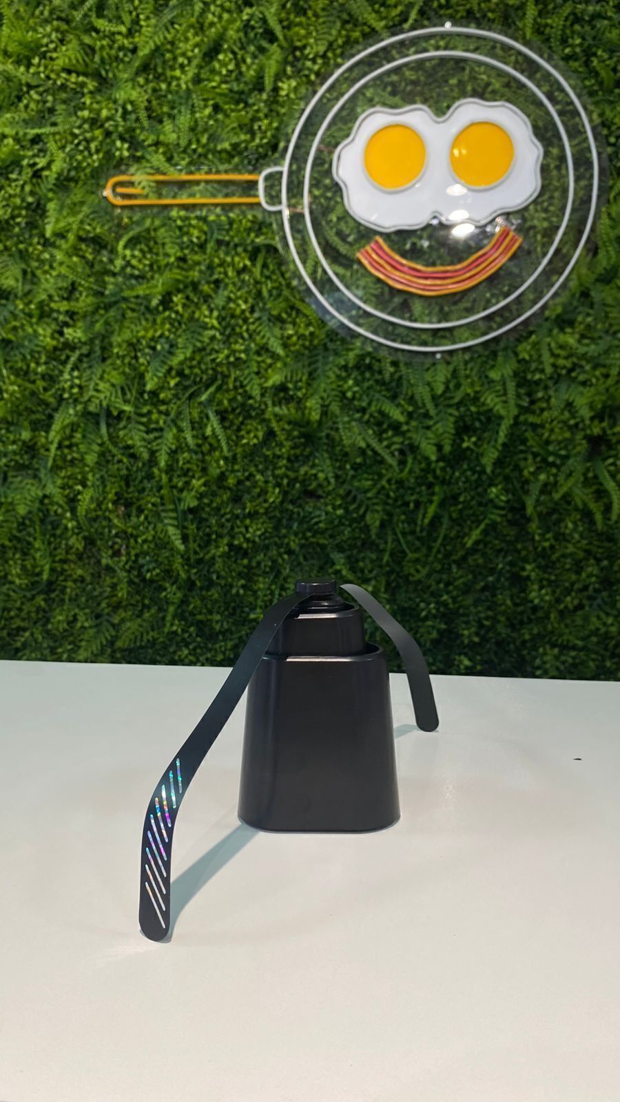 Tamanho compacto: 8 cm x 8 cm (base) x 26 cm (altura total).